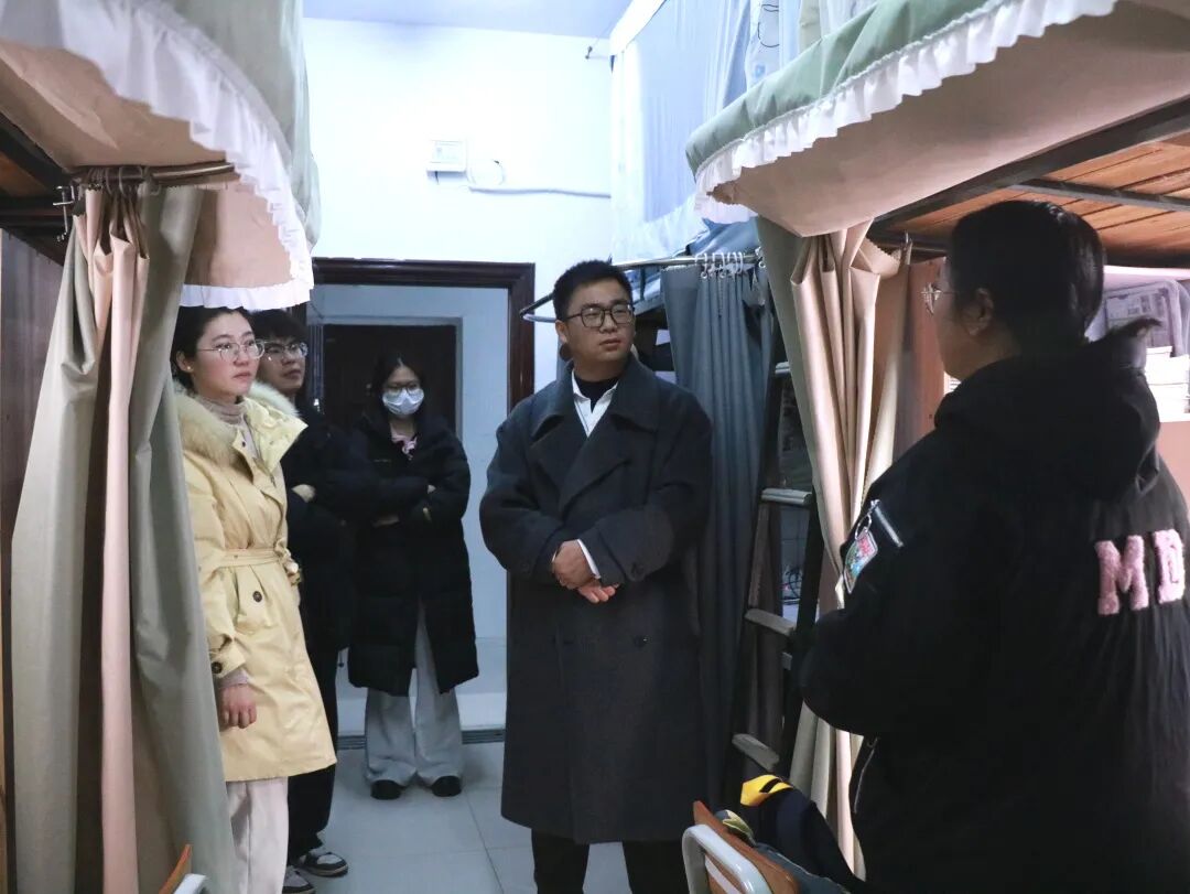 会后,龙偲、覃梓源与2025级4班班主任丁尚思一同走进学生宿舍,开展暖心走访。丁尚思老师亲切询问了同学们近期的学习状况,并耐心解答了大家提出的学业困惑。走访过程中,他们与同学们深入交流,认真倾听大家的心声与实际需求。